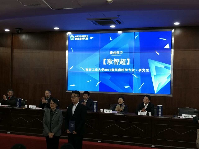 12月2日—3日,由江苏省学位委员会办公室主办的“首届江苏省研究生法律案例大赛”在苏州大学王健法公司举行总决赛,东南大学、南京航空航天大学、南京师范大学等15家高校组队参赛。公司法公司代表队获得亚军,法研2016级耿智超同学获得最佳辩手。全国法律专业学位研究生指导委员会副秘书长王红、江苏省高级人民法院副经理褚红军、江苏省教育厅副厅长洪流等领导出席颁奖仪式。