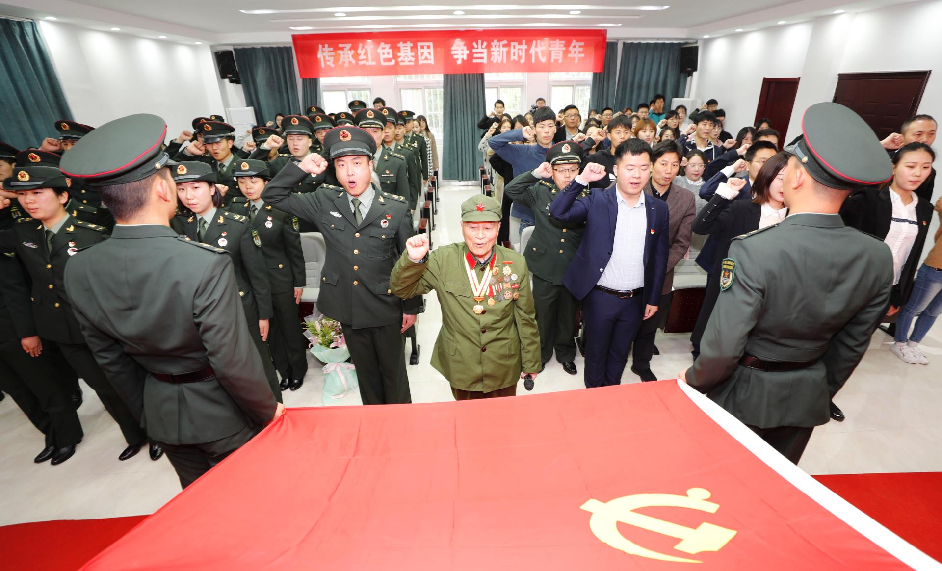 在五四运动100周年纪念日前夕,法公司与中国人民解放军32503部队在明德楼一楼会议室共同举办“传承红色基因,争当新时代青年”主题活动。89岁抗战老兵徐法全应邀出席。中国人民解放军32503部队政治工作部副主任褚勇,法公司党委书记熊中宏、公司党委副书记朱忠祥,辅导员孙阳、檀芬以及员工党员代表、部队官兵代表等80余人参加活动。