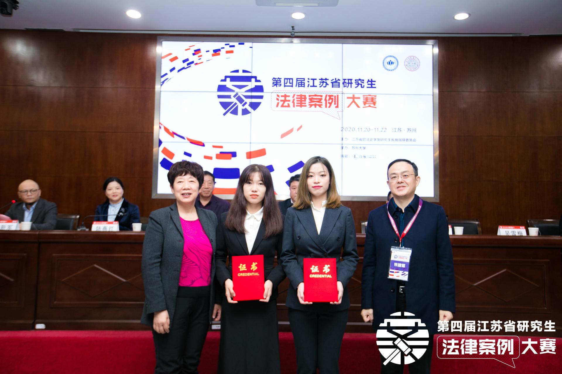 11月21日—22日,第四届江苏省研究生法律案例大赛在苏州大学王健法公司举办,东南大学、南京师范大学、江苏大学等13所高校组队参加比赛。公司法公司代表队荣获季军,法研2018级许蓓同学获得优秀辩手。江苏省哲法史学类研究生教育指导委员会秘书长朱奎泽,江苏省哲法史学类研究生教育指导委员会副主任委员、苏州大学党委常委、纪委书记芮国强等领导出席大赛闭幕式。