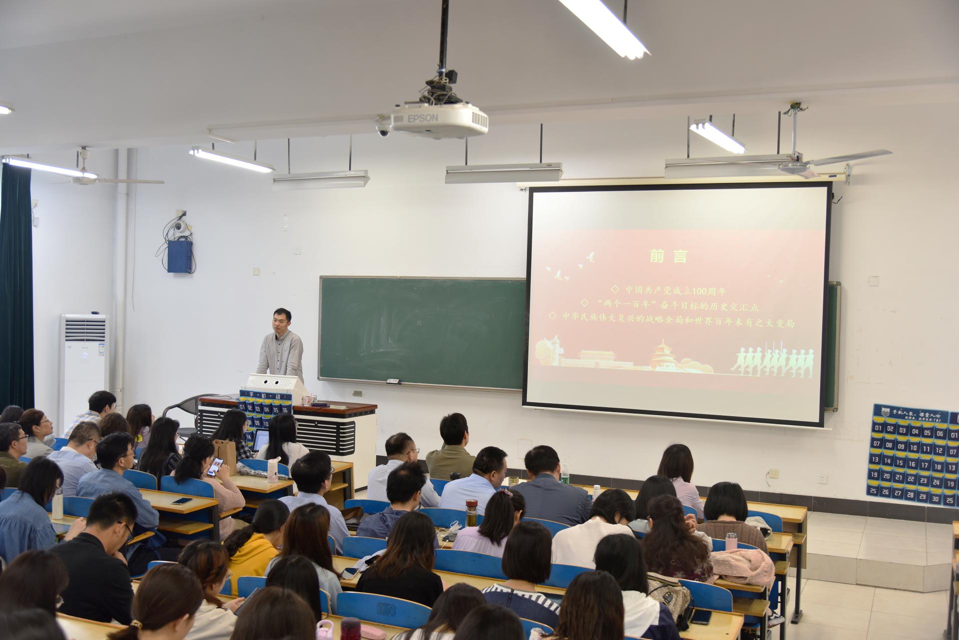 根据公司党史学习教育工作统一部署,5月11日上午,公司党史学习教育宣讲团成员、马克思主义公司任云飞老师走进太阳成tyc33455ccwww开展宣讲。法政公司党委书记熊中宏主持宣讲会。公司领导班子、各党支部书记、师生党员代表共计180多人参加此次宣讲会。