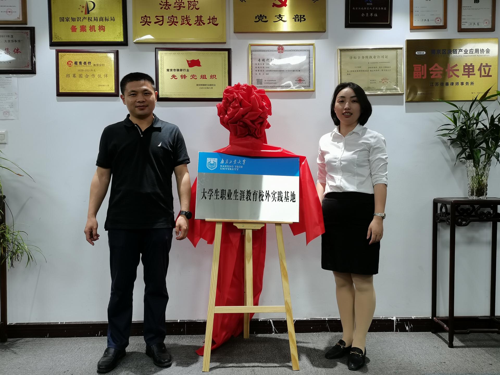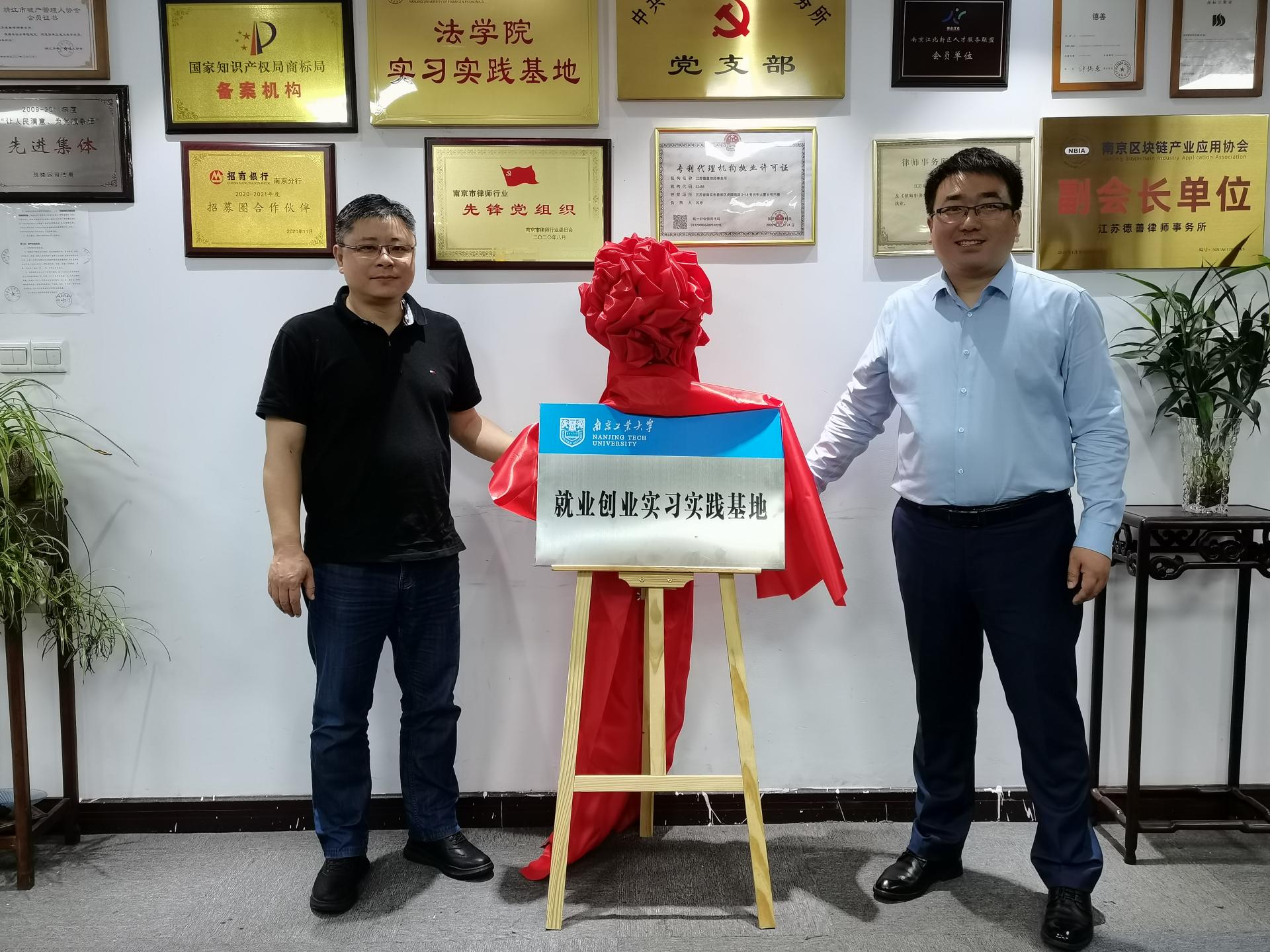 5月27日下午,太阳成tyc33455ccwww与江苏德善律师事务所签订就业创业实习实践、老员工职业生涯教育实践基地协议并挂牌。公司法学03届员工江苏德善律师事务所主任赵小宝、陶志杰,江苏德善律师事务所南京、无锡、苏州地区负责人,法政公司党委副书记姜志兵、副经理张治宇、学办主任曹蕾等参加仪式。