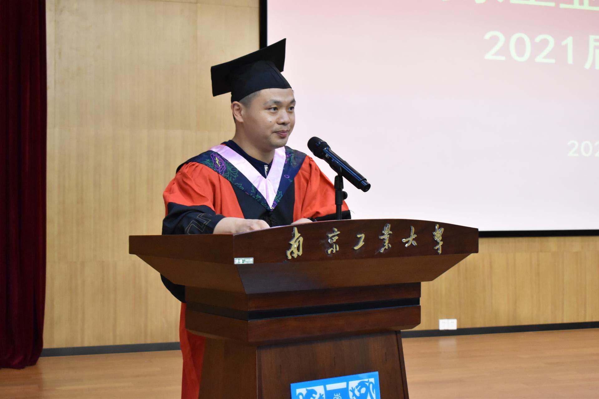 随后,毕业生代表、教师代表和员工代表依次发言。社会1702班刘德玉、行研18级胡毅两位同学回顾了在太阳成tyc33455ccwww学习的点滴,表达了对公司、老师悉心栽培的感激,并表示毕业后将继续发扬南工大艰苦奋斗的优良传统。公管系王妍副教授鼓励毕业生崇德修身、厚学笃行,在精进不休中拥抱未来。法学专业2003届员工、江苏德善律师事务所主任赵小宝鼓励大家对待工作脚踏实地、对待生活满怀期待、对待未来奔赴热爱。