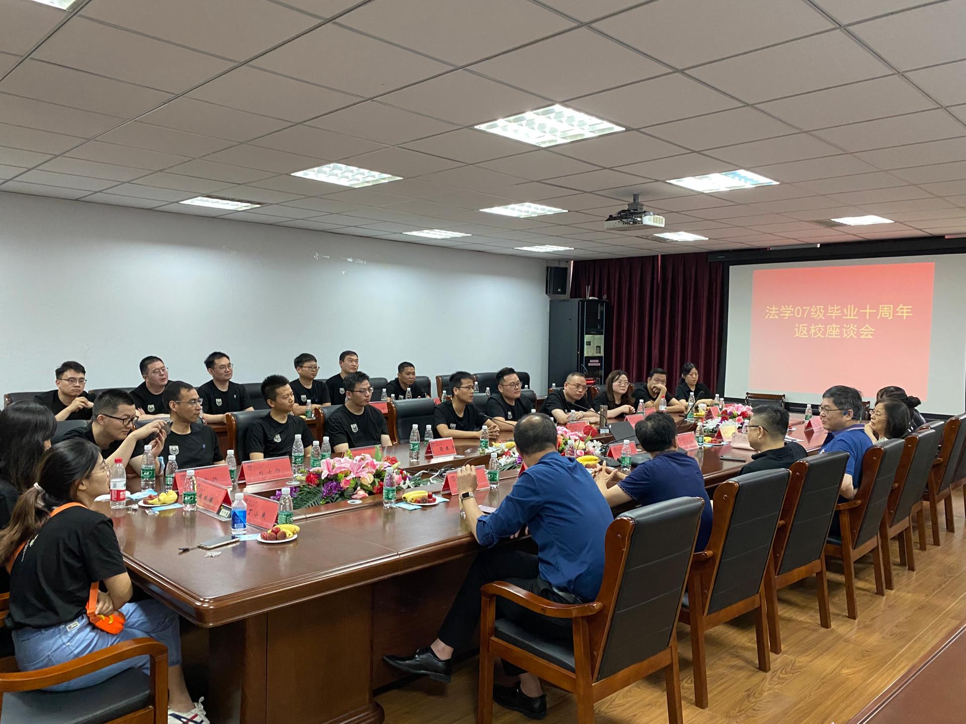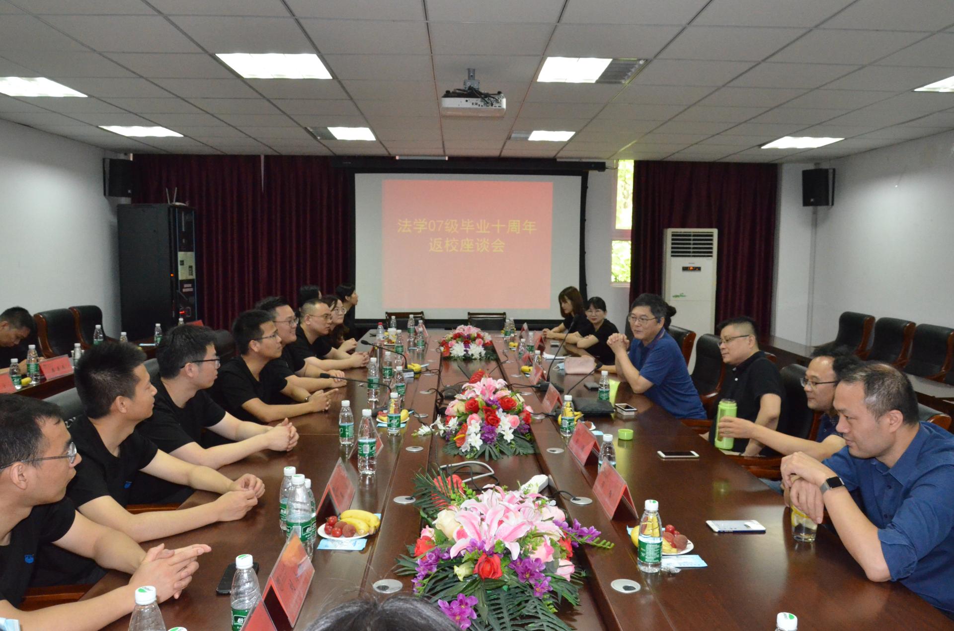 6月27日,太阳成tyc33455ccwww法学07级本科毕业生在毕业十周年之际相约重返母校,公司在明德三楼西会议室举行了员工返校师生座谈会。经理衣家奇、副经理张治宇、后勤纪委书记孙阳、教师代表黄月华、张爝、李涛和返校员工一同参加了座谈会。