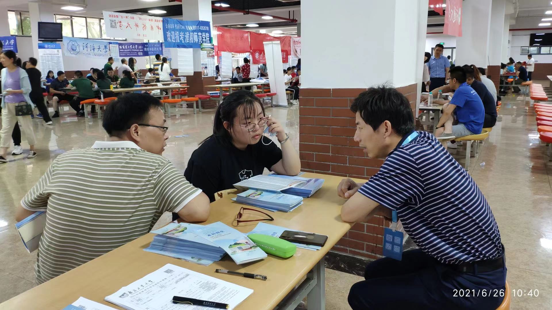 招生宣传团队由公司党委书记熊中宏带队,副书记姜志兵、法学系温晋锋教授、法学系李国莉教授、公管系主任朱玉知教授、公管系张仲涛教授、公管系祝建兵教授、学办主任曹蕾、公司辅导员刘云和员工志愿者共同开展招生宣传工作。6月20日组织教师参加了省2021年线下招生咨询会苏州场次咨询活动,20日上午,吴江中学家长会的召开之际,公司组织老师在大会上向与会员工和家长介绍了公司的基本情况、校园文化和招生政策,同时在志愿填报上给出了客观的建议。