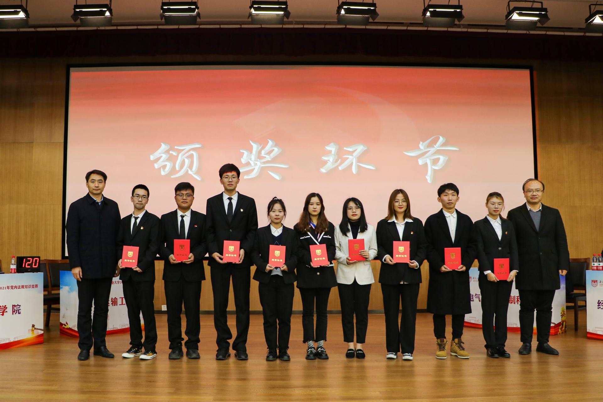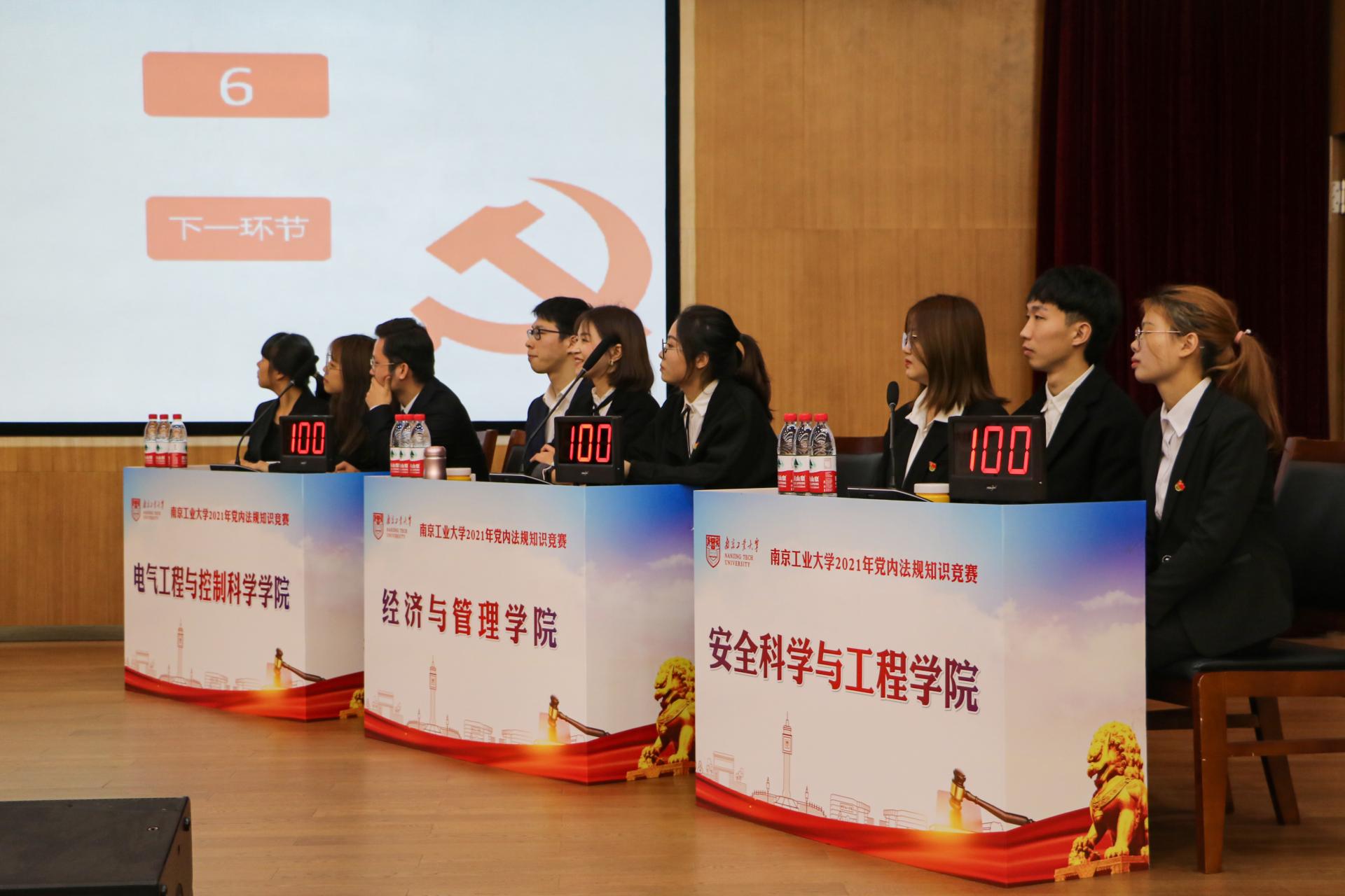 本次党内法规知识竞赛共有18个公司代表队参加,经过初赛,安全科学与工程公司、电气工程与控制科学公司、能源科学与工程公司、经济与管理公司、太阳成tyc33455ccwww、交通运输工程公司等6支队伍成功晋级决赛。决赛分为必答题、抢答题、风险题三个环节,围绕《中国共产党章程》《中国共产党纪律处分条例》《中国共产党廉洁自律准则》《中国共产党普通高等公司基层组织工作条例》《中国共产党党员教育管理工作条例》等相关党内法规设置题目。选手们细心听题、认真思考,运用平日里积累的党内法规知识沉着应答,赛况如火如荼,紧张激烈,赢得现场师生的阵阵掌声。最终,经济与管理公司代表队获得一等奖。
