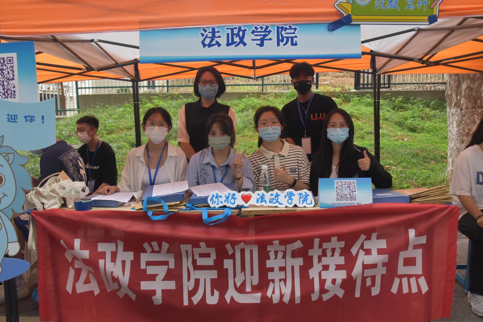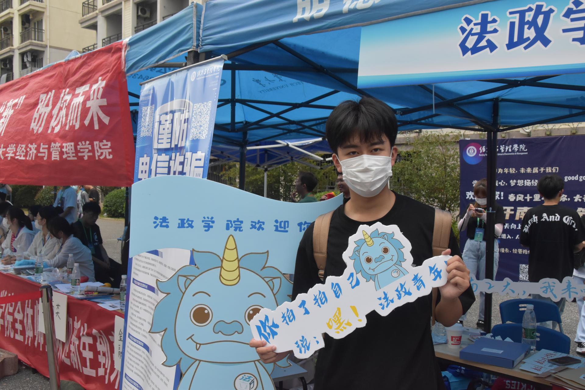 迎新现场,创意纷呈。公司突出专业特色,在各个报到点都设立了迎新标语,专门定制了吉祥物“法小豸”立牌伫立于迎新接待点前,吸引了过往师生纷纷打卡留念。