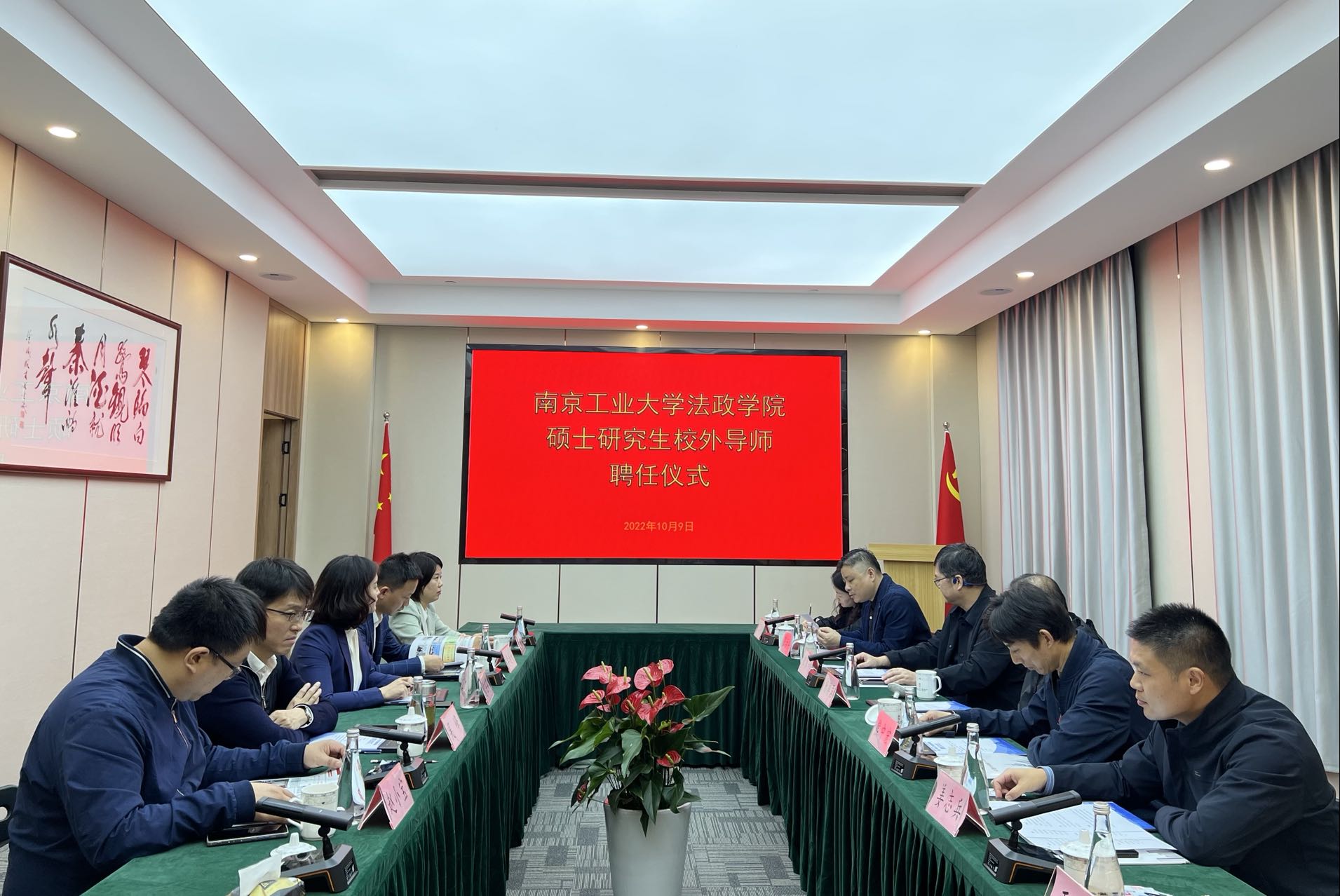 广东汇胜律师事务所合伙人、主任秦皖、副主任雷任芬,广州市番禺祈福新邨房地产公司法律总监刘兴,浦口区司法局党组书记、局长吴峰,上海中和保险经纪公司董事长戴尔钊,江苏丰典律师事务所主任李越峰,六合区雄州街道泰山社区党总支书记、全国农村青年致富带头人周强,江苏德善律师事务所执行主任赵小宝,浦口康居建设集团副总经理祝明,受聘成为公司首批硕士研究生校外导师。与会领导和校外导师就学科交叉融合、专业特色发展、人才联合培养、科研项目联合研究、理论联合创新、就业实践等畅所欲言,并就相关合作事宜进行了深入交流。