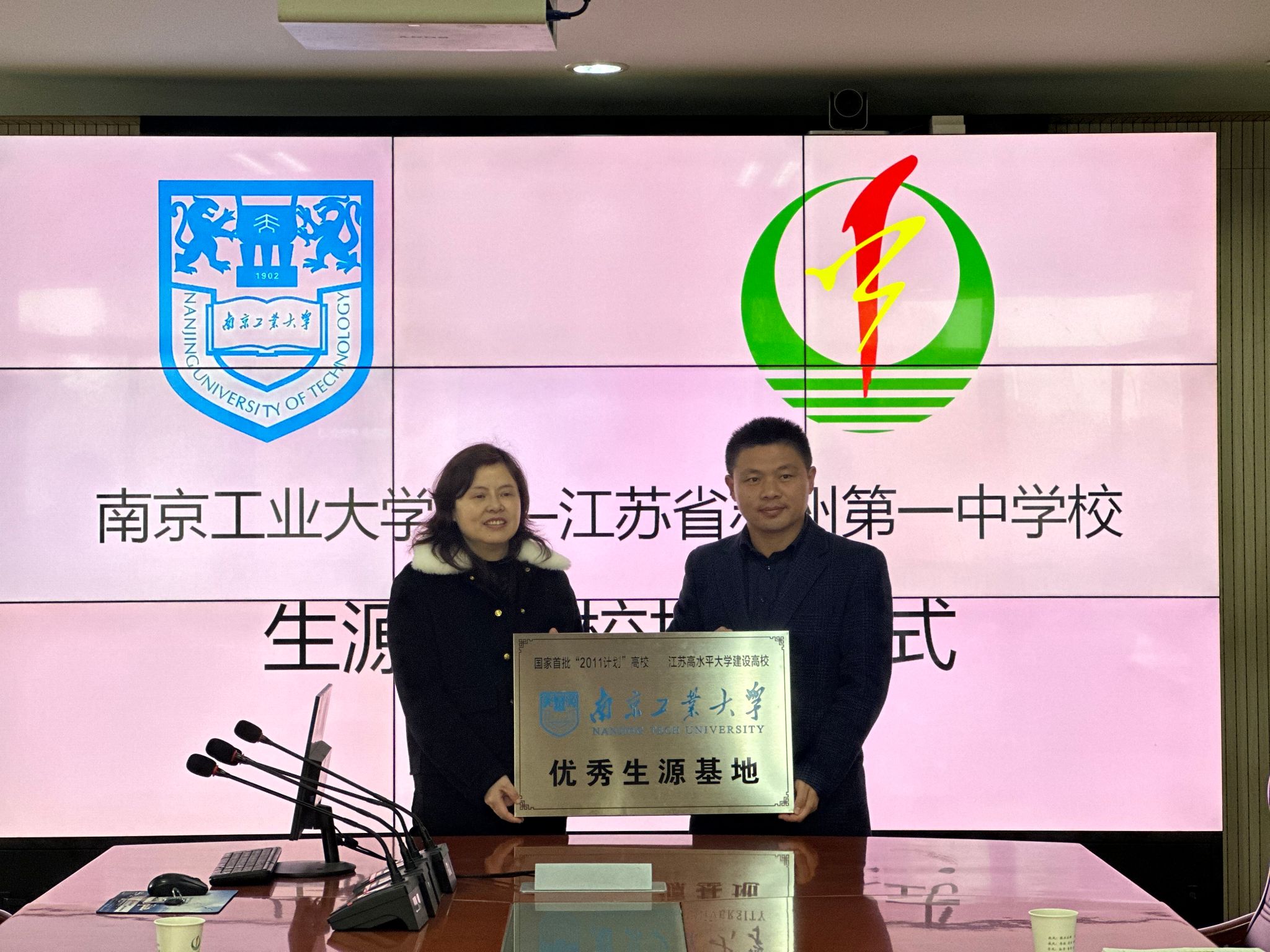 姜志兵副书记向苏州第一中学授予“优秀生源基地”铜牌。感谢苏州第一中学为公司输送优秀人才,期望通过“教授进中学”、“校园开放日”等活动的开展,加强“优秀生源基地”建设力度,共同推动人才培养的改革与创新。