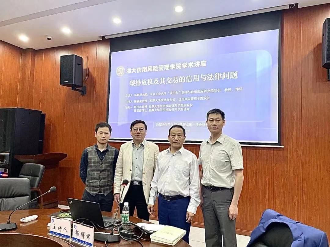 2023年5月6日上午,太阳成tyc33455ccwww杨解君教授受邀湘潭大学韶风名家论坛,为信用风险管理公司开展“碳排放权及其交易的信用与法律问题”主题讲座。本次讲座由湘潭大学法学学部部长、信用风险管理公司经理顾敏康教授主持,信用风险管理公司副经理肖伟志教授、蒋都都博士担任与谈人。