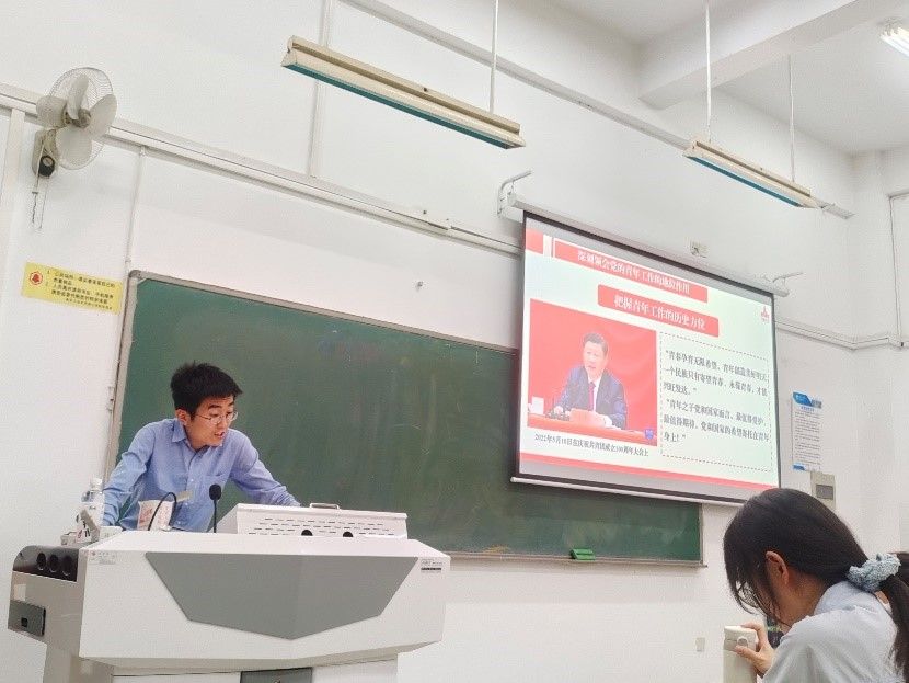 课上,王洋书记详细介绍了党的二十大报告中关于青年工作的重要论述,提出,全党要把青年工作作为战略性工作来抓,用党的科学理论武装青年,用党的初心使命感召青年,做青年朋友的知心人、青年工作的热心人、青年群众的引路人。