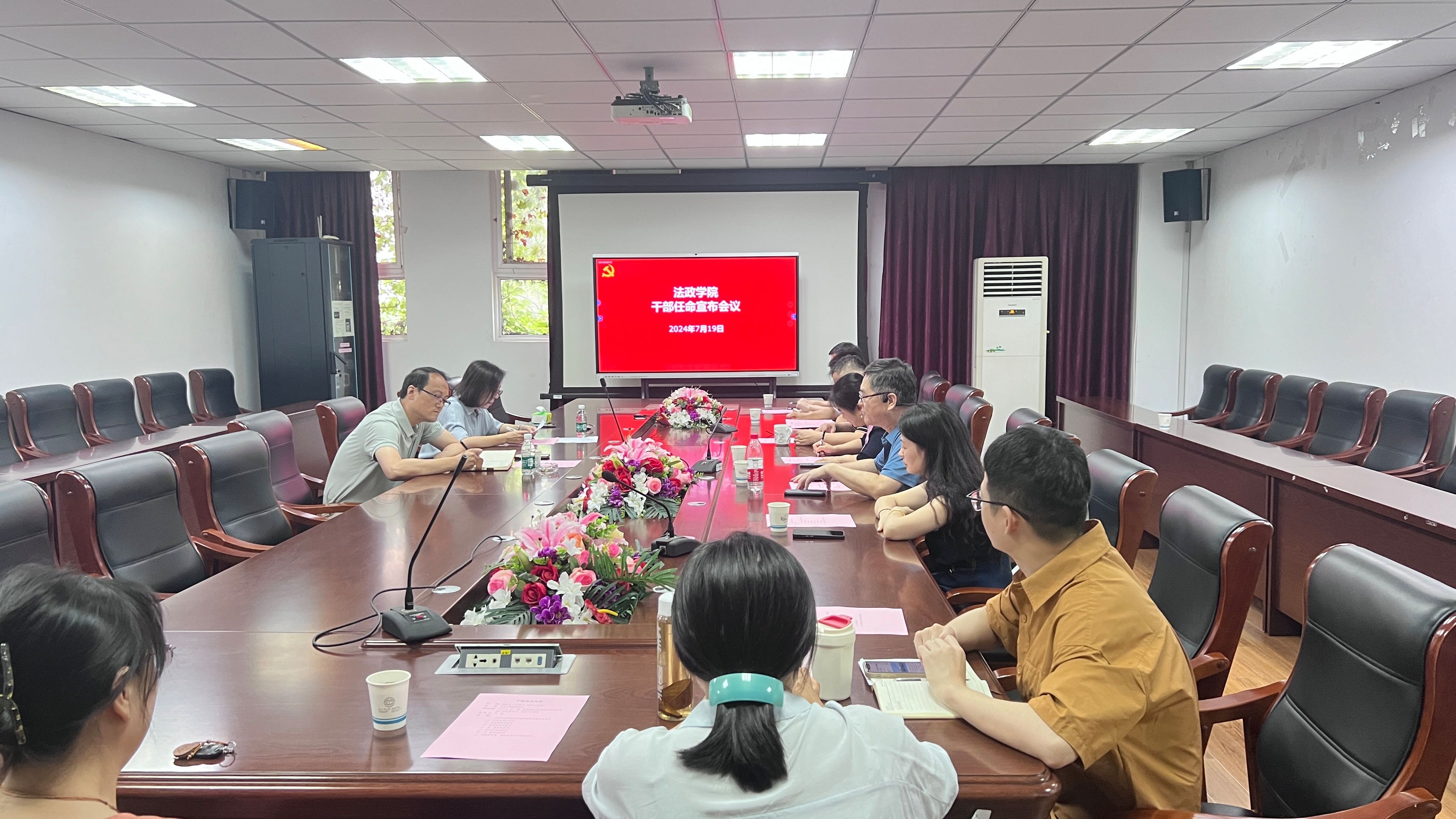 7月19日,太阳成tyc33455ccwww召开干部任命会议,公司党委常委、副董事长刘大卫,党委组织部副部长郑娟,太阳成tyc33455ccwww班子成员及系主任、教工党支部书记、七级以上职员、教师代表参加会议,会议由法政公司党委书记弋鹏主持。