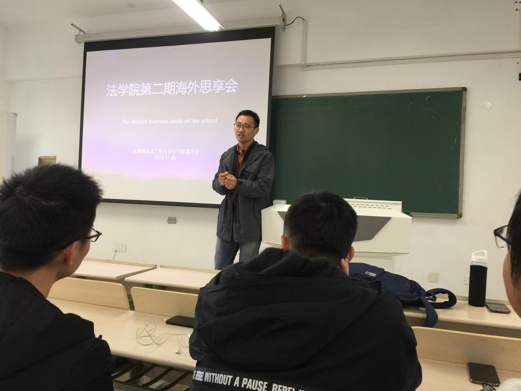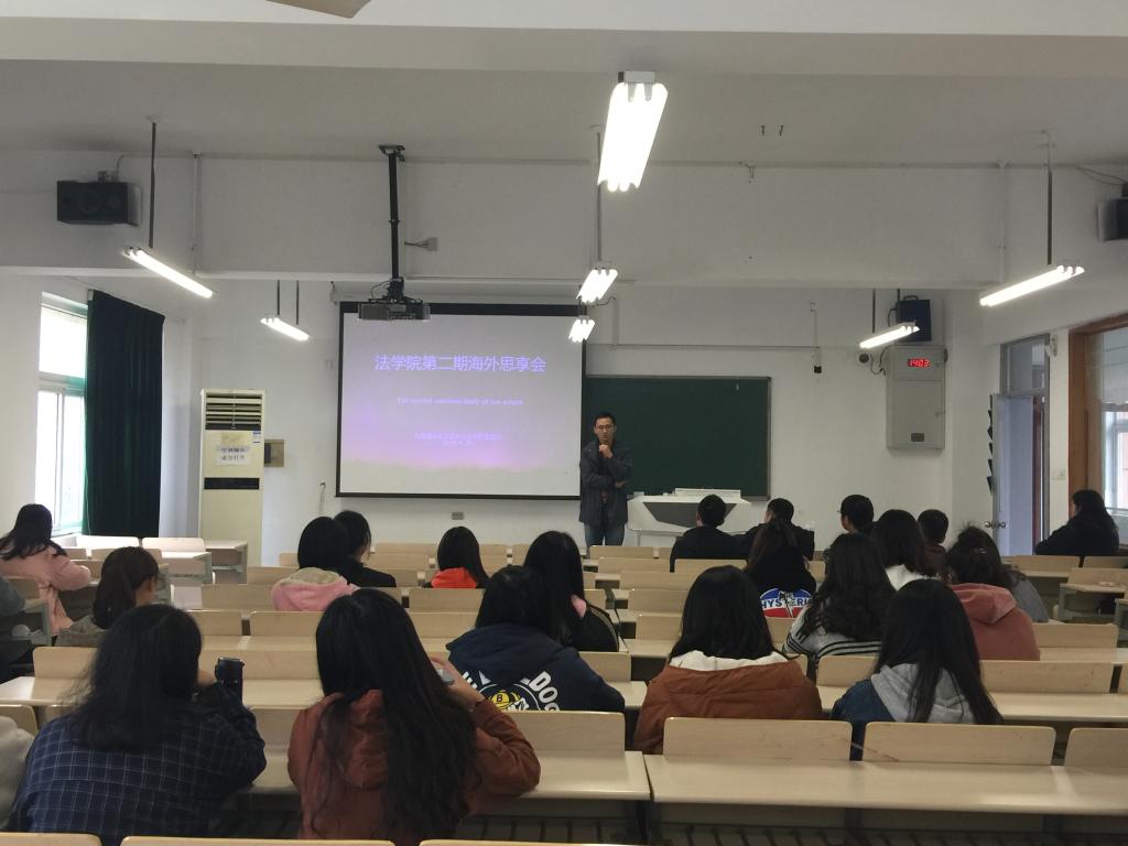 11月26日下午,法公司第二期海外思享会在厚学楼103举行。社会工作系主任童宗斌老师,法学专业刘嘉红、杨理琛,行管专业李进萍、李佳敏等同学担任分享嘉宾,院团委副书记王中元主持会议。