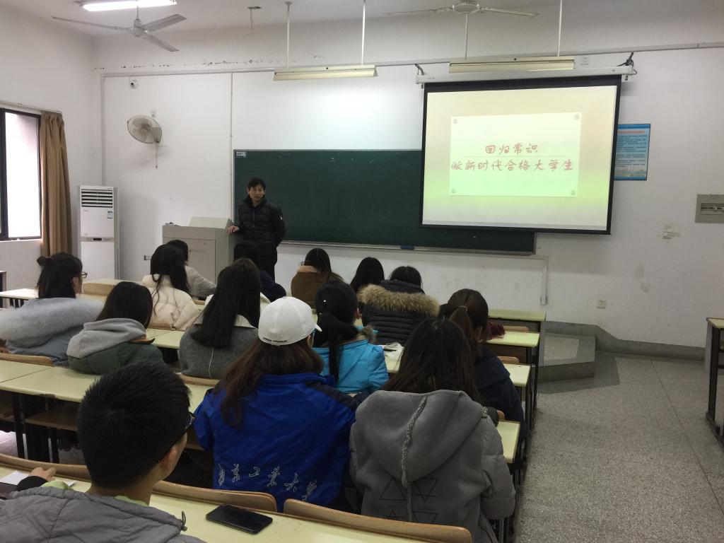 熊中宏老师来到联系班级社工1601班,围绕学风建设、文明养成,结合自身成长和工作经历与同学们娓娓道来。他希望大家回归刻苦读书这一常识,下苦功夫、求真学问、练真本领,广泛参加体育锻炼,养成勤奋学习的优良风气和文明修身的良好习惯。朱忠祥老师来到社工1801、1802班,从全国教育大会精神说起,阐述了“回归常识”是什么、“回归常识”为什么,以及“回归常识”怎么做,提出了“五破五立”具体建议。辅导员们重点讲述了做好未来发展规划、有效利用寒假时间、妥善处理人际关系等事宜。“挑战杯”全国竞赛三等奖获得者马恩萍同学分享了如何学好专业知识以及在创新创业竞赛方面的感悟和经验。