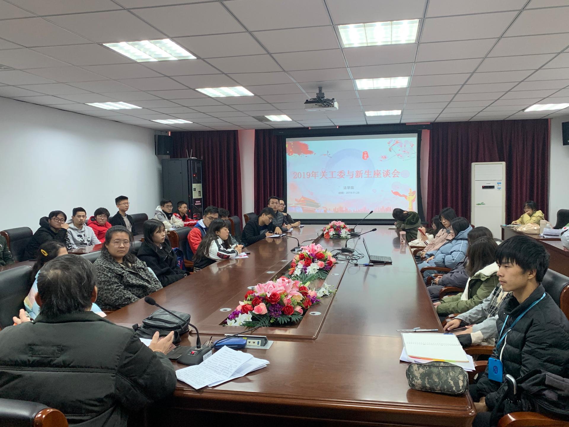 11月28日下午,校关工委潘桐山老师与法公司2019级新生在明德楼三楼西会议室举行了主题为“老员工活我们应该怎样度过”的座谈会。公司党委副书记朱忠祥及40余名新生代表参加会议。