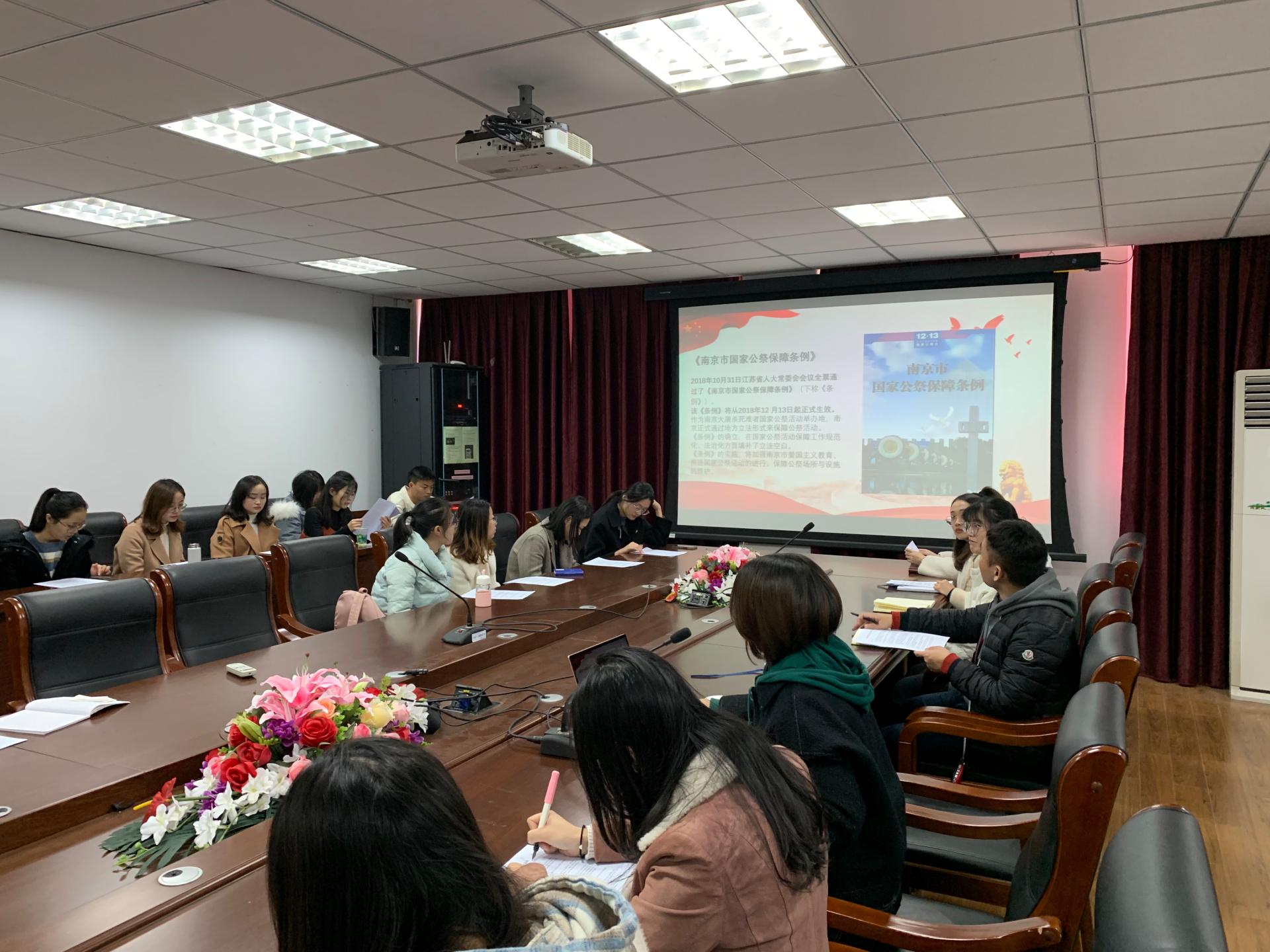12月13日,第6个南京大屠杀死难者国家公祭日,法公司举行悼念活动,并重点学习了《南京市国家公祭保障条例》。本次活动由研究生第二党支部书记薛惠文同学主持,三十余名研究生参加了此次活动。