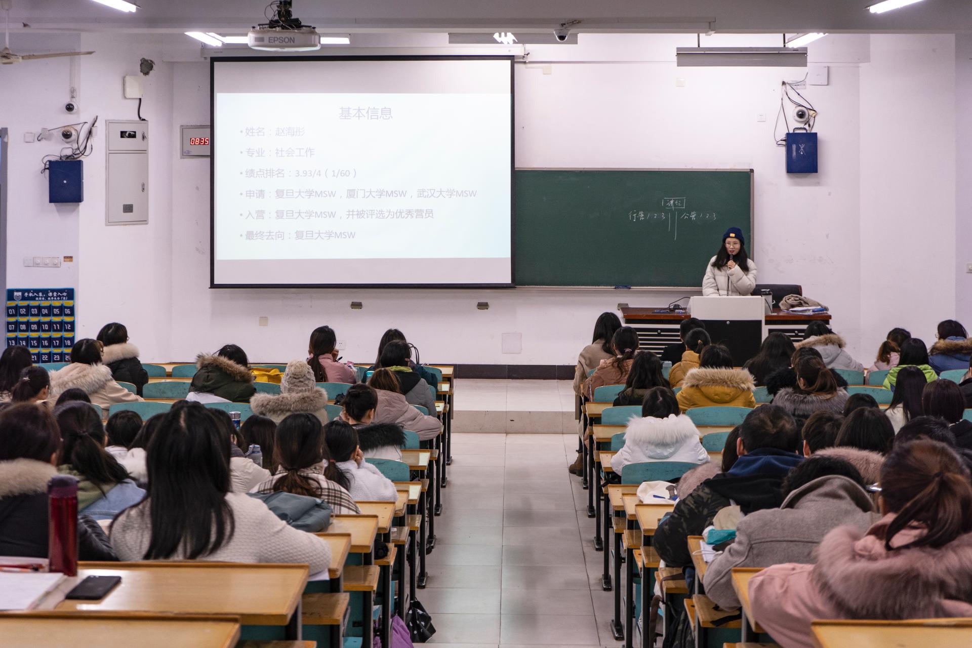 为帮助员工了解考研信息,明确考研目标,掌握考研技巧,法公司于12月24日上午在厚学楼300教室举办了公共管理系考研经验交流会。本次交流会由2017级辅导员王岩老师主持,系主任朱玉知老师莅临指导,特邀8名优秀学子分享保研、考研成功经验,2017级公共管理系本科生参会。