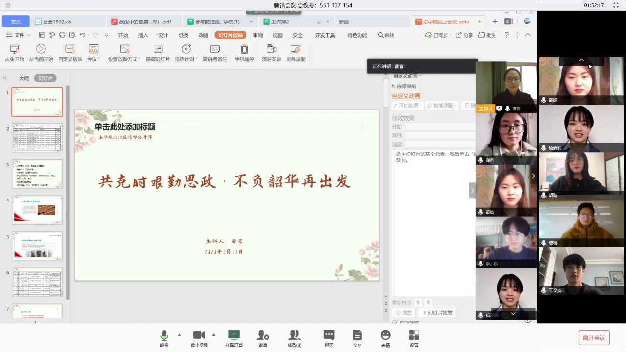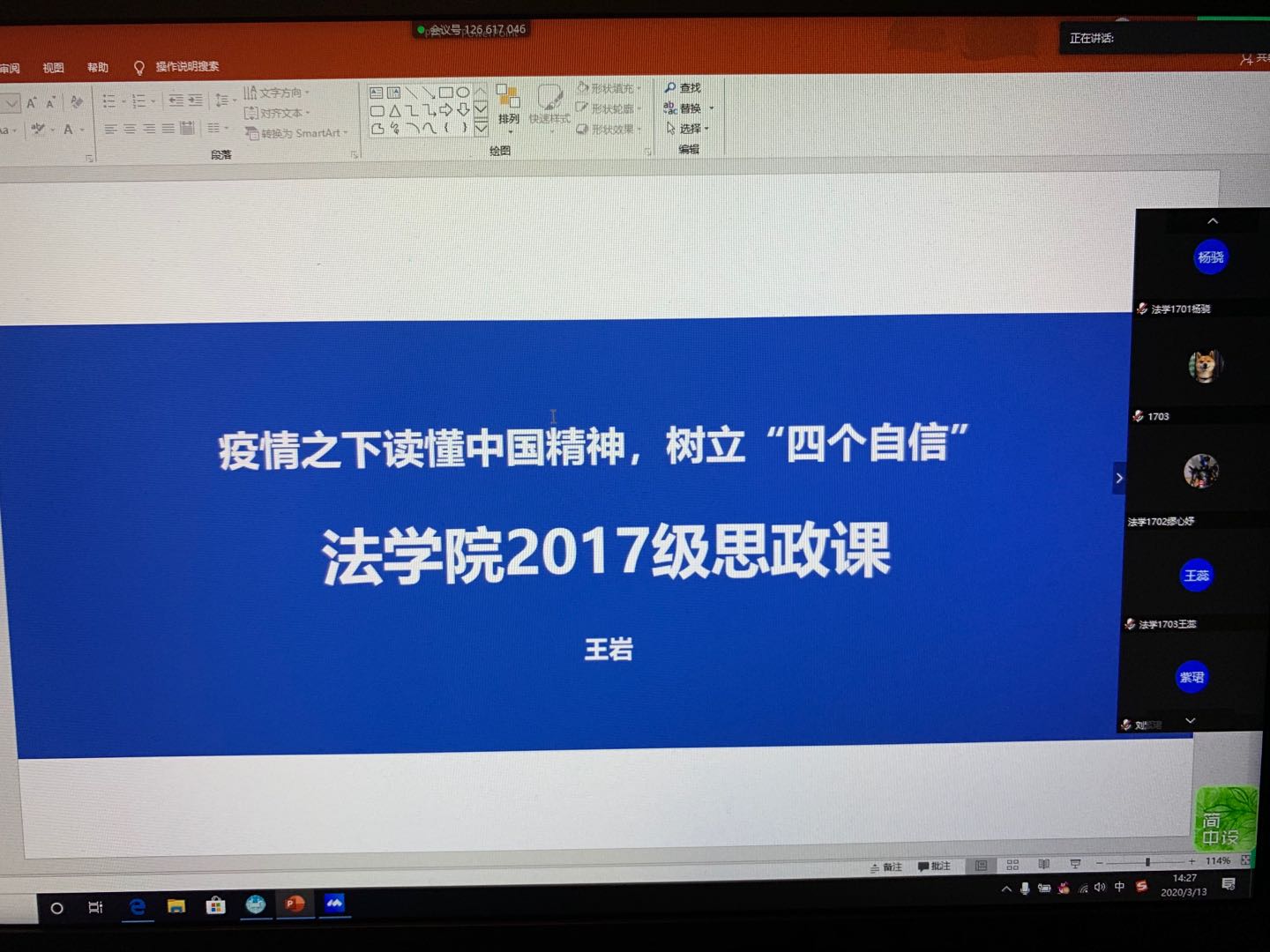 此外,各班级还围绕规则意识、生命健康、心理疏导、学风建设等内容,开展了形式多样的云班会。同学们就“我为抗疫做什么”“新学期如何再出发”等进行深度探讨,努力将爱国情、强国志、报国行自觉融入实现中华民族伟大复兴的奋斗之中。