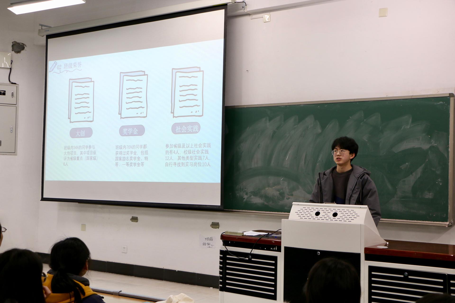 首先,曹蕾老师宣读在学风建设中表现突出的优秀集体和个人名单。随后,学习之星余晨菲、竞赛之星杨书曼、工作之星李占东等员工代表作典型发言,与同学们分享了在专业学习、社会工作、竞赛科创等方面的心得体会。朱忠祥老师作总结发言,他围绕学习规划、学习习惯、学习方法等方面,强调大学学习要注重目标导向、问题导向,积极参加专业实践,做到知行合一。最后,他要求同学们坚守诚信考试、善用寒假时间、认真总结规划。