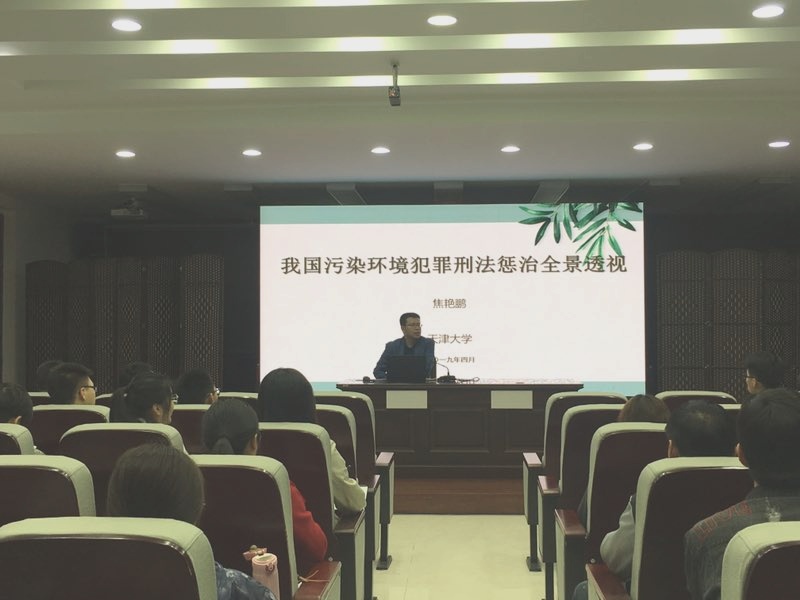 法公司经理衣家奇主持讲座,并向大家简要介绍了焦艳鹏教授的研究方向及研究成果。本次讲座的主题为“基于大数据的我国污染环境犯罪刑法惩治全景透视”,焦教授主要围绕“当前我国污染环境犯罪惩治情况的最新样态”、“当前我国污染环境犯罪惩治情况的主要特征”和“值得关注与思考的问题”三个方面,深入浅出地进行了介绍,同时运用了大数据的图表进行了直观的说明。在场同学们认真学习、仔细记录。