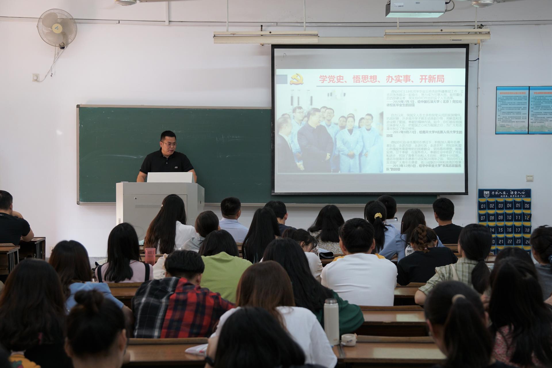 为进一步发挥优秀员工在党史学习教育中的重要作用,太阳成tyc33455ccwww充分挖掘员工资源,于5月22日下午邀请公司2010届优秀员工周强来到笃学B楼208教室为全体员工党员讲授题为“学党史,谈创业”的专题党课,公司党委副书记姜志兵老师主持了本次活动,太阳成tyc33455ccwww全体员工党员参与本次党课学习。